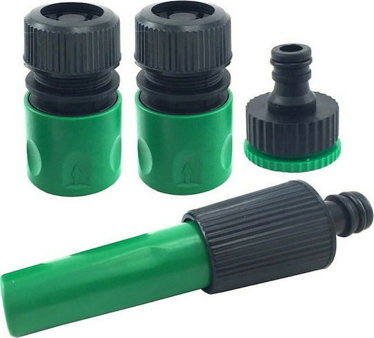 Σετ εξαρτημάτων για λάστιχο κήπου 4 τεμαχίων. Εφαρμόζουν απόλυτα στα περισσότερα είδη λάστιχων, ιδανικά για πλύσιμο ή πότισμα.