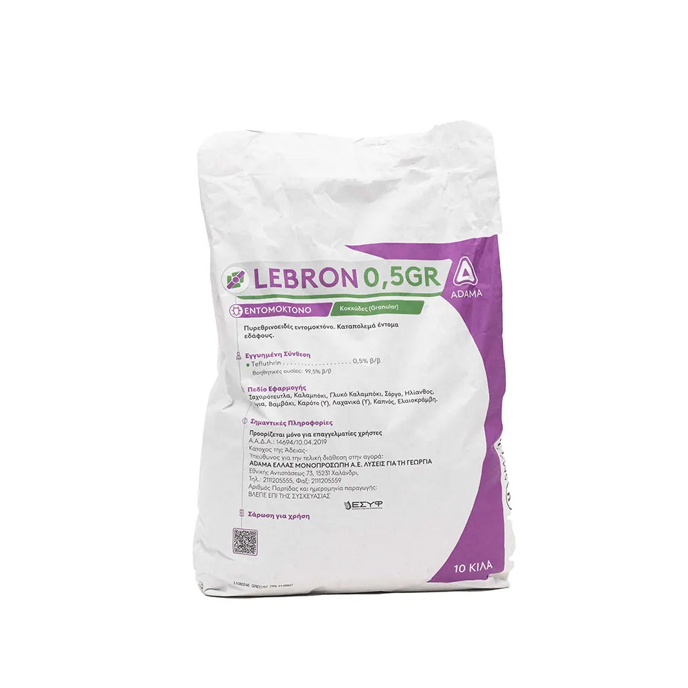 - Το Lebron® 0,5 G εμφανίζει υψηλή αποτελεσματικότητα σε ευρύ φάσμα εντόμων εδάφους (Κολεόπτερα, Δίπτερα, Λεπιδόπτερα και Μυριάποδα).