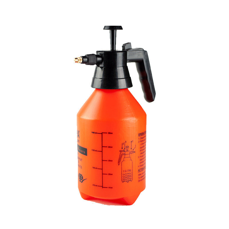 Ψεκαστήρας προπιέσεως ενός χεριού 1,5lt για όλες τις χρήσεις του κήπου, με διάφανο δοχείο υγρού για να είναι ορατή η στάθμη και ρυθμιζόμενο μπεκ για τη ρύθμιση του σύνεφου διασποράς του υγρού.